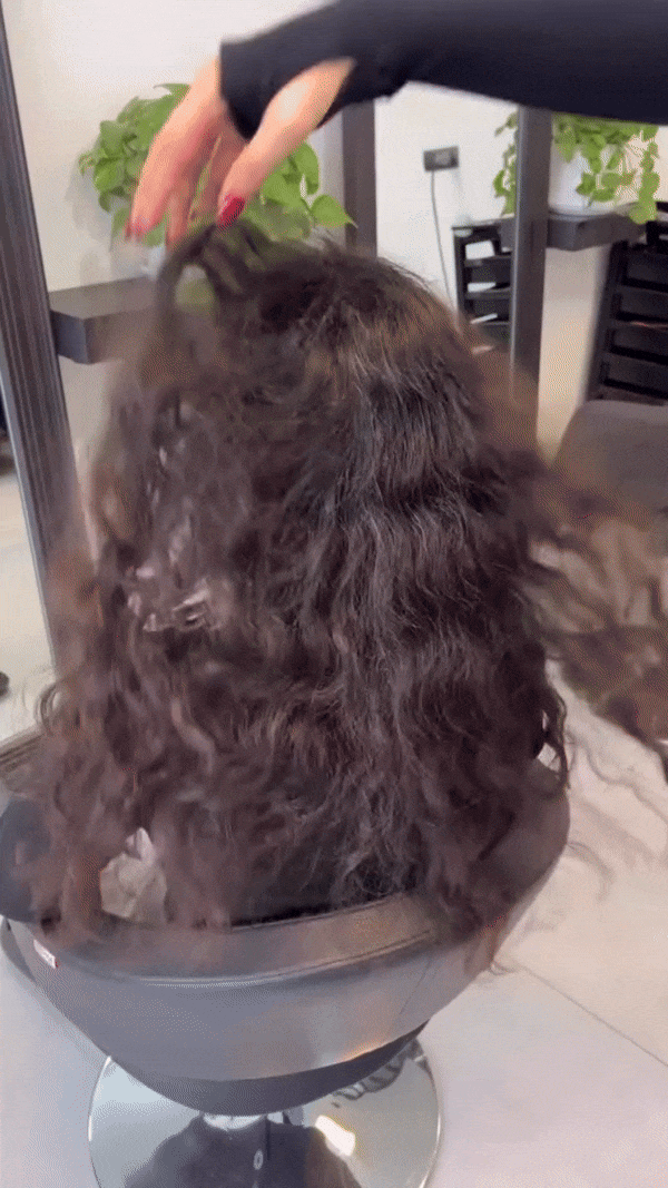 Répartis bien le produit sur toute la chevelure, mèche par mèche, puis laisse agir 10 à 15 minutes.